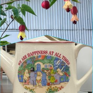 おはようございます😃 ①アブチロン・チロリアンランプと ムーミンのポット🫖(私の庭にて) ②ケイトウ ③トウゴマ ④キャットテール ⑤ポーチュラカ ②〜⑤神峰公園にて😊 🏷️カラフルな火曜日 🏷️ムーミンの日 🏷️神峰公園 🏷️真っ赤な火曜日 参加します。