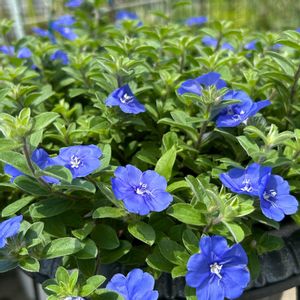 ロベリアとリシマキアを使った寄せ植えです。 ブルーのロベリアとリシマキアの黄色い花のコントラストが鮮やか! リシマキアは、花が咲く前のダークカラーの葉っぱだけの時もイイシゴトしてましたよ。 背景に植えてるのはカルーナです。