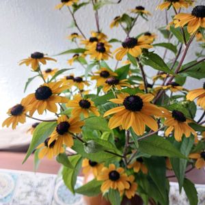 花瓶の中で蕾もすべて開いて ポンポン満開になってくれました🤍 水揚げ抜群💮花もち最高💯 毎年こうして切り花にして楽しめると思うと、 お迎えして本当に良かった♪ 植えてある裏庭ポタジェも明るくなりました✨