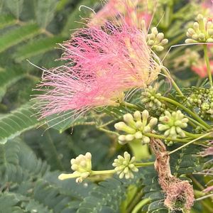 💓ネムノキ(合歓木) 夜になると葉が合わさって閉じて眠るように見えます。合歓木は、葉が合うところから夫婦円満の象徴とされています。 ⚫︎マメ科 ネムノキ属 ⚫︎原産 日本 ⚫︎花期 6月〜7月