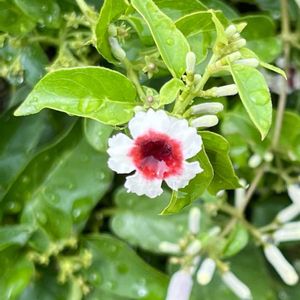 🩷ハツユキカヅラ(初雪葛) 新芽に白い斑が入る様子が、雪をかぶったように見えることから、「初雪」を連想して名付けられたとされています。 ⚫︎キョウチクトウ科 ハツユキカヅラ属 ⚫︎原産 日本 ⚫︎花期 5月〜6月
