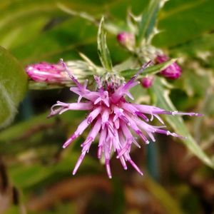 今日の花アザミ 調度今朝咲いてた香りアザミ〜桃色花火🎇〜ネーミングも可愛い💗💕 斑入りアザミはまだまだ花が咲かない