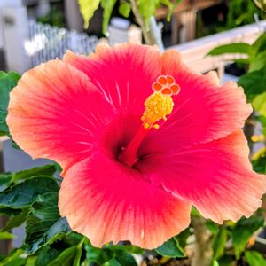 おはようございます。◕‿◕。 我が家の庭に今年はじめてのハイビスカスオレンジフラミンゴ 3鉢のハイビスカスが、暑さのせいか、栄養不足なのか全く咲かなかったこの夏、やっと咲いたフラミンゴ、嬉しくて、ありがとう💓