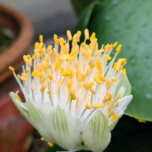 おはようございます。◕‿◕。 株分けして今年はお花期待していなかったのに、小ぶりながら咲かせてくれました👋 マユハケオモト 何とも魅力的なお花です💓