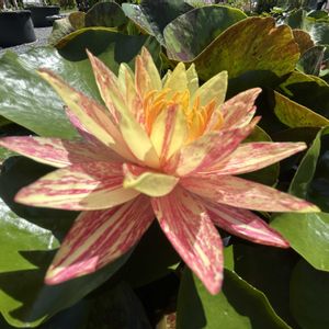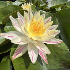 2024.09.10 極上の斑入葉の睡蓮が咲きました🌟 こちら所謂「斑入り、錦」と云われるものになります。 睡蓮は種類によって葉に模様が入るものがありますが、そのほぼ全ては元ある模様になります。 斑入りと云えばそれまでですが皆さんの思う斑入りでは無いです。 例でいうと、ハツユキカズラなどと同じです。 こちらはそういうものでは無い変異的なものになります。 なので生物学的には通常より劣る部分が多く、育てづらいです。 ですがしっかり育てれば大変美しい波花弁を展開してくれます。 葉も様々な形で表現されて見応え抜群です。 萼にもしっかり斑が表現されるので、葉・蕾・花と全てが楽しいです。