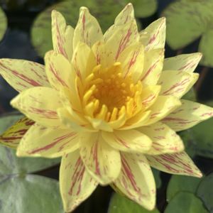 耐寒性睡蓮パラニー💛 黄色の花に濃い紅色の斑が鮮やかな品種。 班入ると豪華ですね✨ おはようございます🤭 kazuさん睡蓮農園では古き良き品種や最新の品種🪷を沢山見れました🤭日々世界中で新しい品種🪷が作られています!自分自身出来る事って睡蓮の良さを伝え、興味を持ってもらう事です🤭 今日で休みも終わりです💦だから神代植物園へ行ってきます‼️