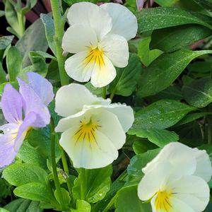おはようございます☀️.° 11月5日(水)☀20℃予報 朝は冷たい空気🥶今日は晴れそう🌞秋晴れルンルン🎶 🏷白い水曜日♡ 最近🏠に仲間入り これから頑張って\(*⌒0⌒)♪ ①色が変わるみたい ビオラ天使の誘惑🤍🍃 今は白っぽいけど黄色うす紫色 青になるようです🤗 ②アリッサム🤍🍃 ③ノースポール🤍🍃 寄せ植えに最近お迎え ノースポールはこぼれ種ꕀ⋆ あっちこっちに小さな🌱が出ています(*´v`) ④昨年のカガリ弁 菊 今年も咲き出しました🤍🍃 豪華な菊 またもりもりなったらupしますよろしく☺️ ⑤🏠に何年目??菊の花🤍🍃 今年も小さな可愛い小菊 咲いてくれました🥰 ありがとうの花❣️ 🏷素敵な水曜日 今日も素敵な一日をお過ごしください🍀*゜