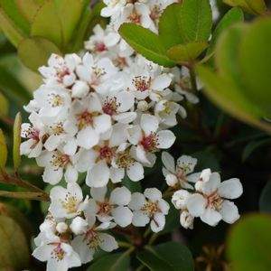 近くの公園で シャリンバイが満開でした 最初は真っ白ですが咲き進むと雄蕊がピンクになります