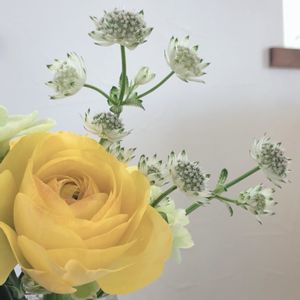 おはようございます☀ ミモザとラナンキュラス アストランチャ 飾ると相性良いですね😃
