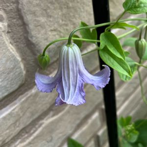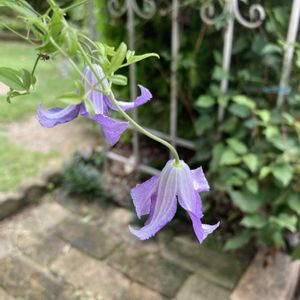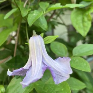 ⌘クレマチス ベティ・コーニング 淡いブルーの🔔が可愛らしく咲いてます。 今年は場所を変えたせいか、昨年より少し遅めでした。 近づくと甘いかおりがほんのりとしています。