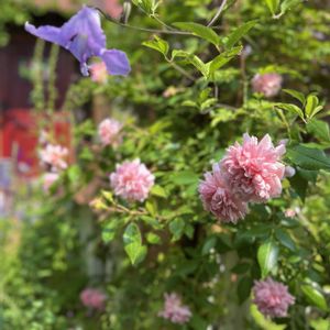 毎日寒いです🥶 今年は5月に入ってから気温が上がらず、バラもクレマチスもゆっくりです。 ①②ミルに這わせようとしたけれど結局別々に咲いてしまった。でもバラが無くなって寂しいアーチに咲いてくれたからなかなか良いかも。2.3年前に500円に値下がってた パープレアプレナエレガンス。鉢植えだけどすごく伸びた! ③④ベティコーニング トロイメライに絡まって咲いています。 ⑤ベランダのエトワールバイオレット。こちらも500円値下げ組。 あと、3種類あるのですが、 まだまだ咲かない😰