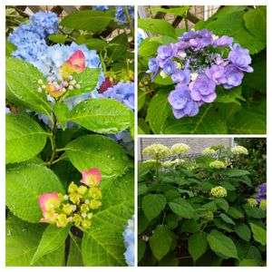 おはようございます☔🐌🍃 部屋から紫陽花眺めています🩵💜🩷 ①左←ピンクの縁取りの紫陽花が小さいけど咲き始めましま💗 右上↗️は去年お迎えしたフェアリーアイですが、水色にグリーンが入った感じでしたが、今のところ紫色っぽく咲いてきました💜😂 右下↘アナベルがグリーンから少しずつ白に変化してきています🤍🌿 ②色々咲いてきました ミニ薔薇 モカ少し咲いてきました🧡 去年か一昨年に植えたアメリカンブルーの淡い紫色が種が落ちていたのか咲いてきました🩵 オキザリスが小さいピンクのお花が咲いてくれました🩷 昨日お迎えしたポーチュラカ2株とアメリカンブルー💙をハート型のハンギングに植えました。お庭の木を切ったりしたので、目隠しに木に吊るす予定です🥰 ③アガスターシェ ボレロが咲き始めてきました💜
