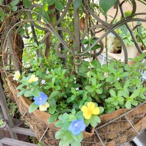 おはようございます😊 今日も熱中症注意ですね👒 気をつけてお過ごし下さい🌿 ①薔薇 ブルームーンが次々開花しています。あまり夏は咲かさない方が良いと三上さんが言っていましたが…🫣 栄養系コリウス💛切っても切ってもモリモリしてきて、ジニアが負けてしまってます😅 去年の春にお迎えしたベロニカ トウティラン💜夏越しが難しいかもと言われていましたが、無事に夏越しして咲いてきました🥰 真夏にお迎えした八重咲きジニア🩷咲いてきました(人 •͈ᴗ•͈) ②薔薇 パフビューティー ミニ薔薇 ペンタス アメリカンブルー💙とポーチュラカ💛のハンギングは撮るタイミングが難しいです。夕方には萎んでしまうので🤣