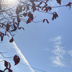 pic 1 *ムンステッドウッド* このバラは春よりも秋が似合うと思います🌹 少しくすんだ赤、花形、香り全て好きですが、トゲトゲさんなのでお世話する時は気を付けないといけません🦔 🏷️毎日がローズショー pic 2 *ルリマツリ* 再び咲き始めました💙 ありがとう😊 🏷️美しく青きドヨウ pic 3 ある日の朝焼け☀️ 🏷️土曜日はお空の発表会 pic 4 買い物帰りに見つけた飛行機雲✈️ 🏷️飛行機雲 ˖✻*˸ꕤ*˸*⋆。˖✻*˸ꕤ*˸*⋆。˖✻*˸ꕤ*˸*⋆。