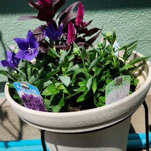 今日はまた暑くなったので少し涼しくなってからホームセンターに土を買いに行ったつもりが植物もお迎えしちゃいました🤗 カラテアは処分品だったけど葉っぱの色合いが好きだったので復活を願って、ハクサンのセロシアと桔梗は寄せ植えで秋を感じる寄せ植えにするつもりです😊 植え付けたらまた報告します。