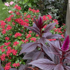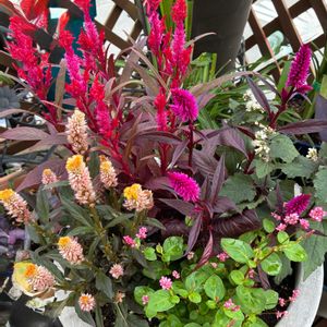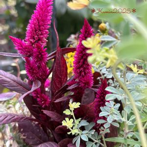 先日ハクサンさまの商品紹介ページに掲載していただいた セロシア カラフルセレクトの寄せ植え 今はこんな感じになっています 2枚目の10月10日の撮影から20日 右のメリダレッドの背がシュルシュルと伸びました 均等にこんもりとはならなかったけどこれはこれでアリってことでいいかしら。。 穂先のモフモフはミスティックシェードの方が長くてよりモフモフ メリダレッドはロウソクの炎のようにコンパクトで鮮やかです もう何種類かぎゅっと詰め込んでもかわいかったかも💞