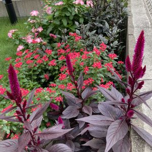 こんばんは♪ おとつい植えたセロシア寄せ植え、アプローチに置いてみました。この鉢には薔薇ラリデガゼルがいたのだけど、テッポウムシにやられてしまって😭ぽっかり空いた鉢のスペースが悲しすぎて、急いで寄せ植え作成です! #セロシアヴィンテージ #セロシアミスティックシェード #greenfarmvillage さんのセロシア #パープルファウンテングラス #ペンタス ミスティックシェードの後ろがちょい寂しいので、さっきコリウスムーンライトを挿しておきました。 秋満載の寄せ植えになったかな(*´꒳`*)🍂