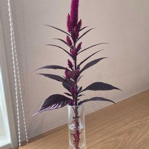 庭のセロシアミスティックシェードさん、地植えでも全く虫がつきません! 数日前から花瓶に生けていますが、一輪でも存在感があります🥰