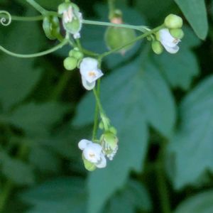 昨年ナツフジが咲いていた藪の茂みに行ってみた。ナツフジの花は見られなかったが、つるまきの植物が色々見られた。 ①②フウセンカズラ別名ハートカズラ ムクロジ科 フウセンカズラ属 ③ノブドウ ブドウ科 ブドウ属 ④ヘクソカズラ アカネ科 ヘクソカズラ属 ⑤ナツフジ? マメ科 ナツフジ属
