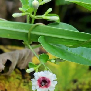 9月8日 今日のお花 ❀🤍🩷🌿 ヘクソカズラ 🌿🩷🤍❀ 花が可愛くサオトメバナの別名も、悪臭のインパクトで、気の毒な名前に。 道端や河原に多いつる性で、葉を揉むと思わず顔をしかめるような悪臭があります。名前の屁や糞もそこからきてます。しかし花は名前に似つかないほど可愛らしく、白い釣鐘形で、中心付近に赤い模様があります。赤い模様がお灸をすえた痕に見えるのでヤイトバナ、花が可愛いからサオトメカズラともいいます。 花期 8〜9月