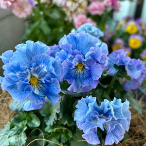 神戸べっぴんさん『青の幻想』 見送った子達。水色も素敵でした🩵 園芸店でマダムに声をかけられました。毎年ブラックのビオラを植えるので今年も探していると。 そこにありますよ🖤とご案内し、私は過去にコレと合わせて植えました♪とお気に入りのビオラを見せると、あなたセンスいいわね〜❣️と採用してくださりお買い上げ。10ポット売りました😁 マダムの素敵なお庭のお写真や動画を見せていただき、近くならお邪魔したいと思ったら、家から車で30分以上。えー遠い😣 マダムはお花の病気なので🤭 車で1時間ぐらいなら走って🚗買いに行っちゃうんだとか。スゴイな〜。
