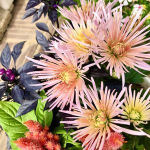 10月13日 神奈川県鎌倉市の大船フラワーセンターでのデジカメ教室を受講した日、鎌倉あじさい同好会でいらしていたMariakoさんに偶然お会いしました。 Mariakoさんに紹介して頂いた 大船のお花屋さんで購入した ケイトウの寄せ植えです。 220円でこの可愛さです☺️