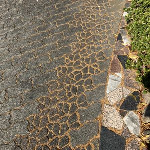 10月30日 10月19日 神奈川県寒川町 19日に咲き始めた駅前の キンモクセイが散り始め、 歩道が芸術的な模様になっていました😊