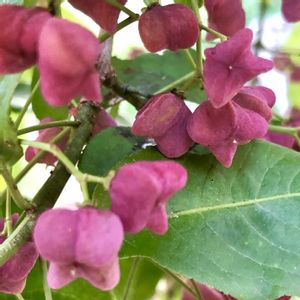 ♥️マユミの実♥️ 💜スモークツリー💜 異常気象が続きます こちらはやっと雨の降る日もありますが、降れば肌寒く、晴れると30℃もの暑さ 本当にこれからは夏と冬のニ季になってしまうのでしょうか? それでも暑さが続いたらことで、早々と出会えたマユミの実♥️♥️ (写真1枚目2枚目) 今年の豪雪でかなり枝も折れましたが、薄紅色の美しい実をつけ始めました そして、もう一つ、春にたくさん咲き収穫したばかりのスモークツリーに、また穂が💜💜 (写真3枚目) 異常気象にめげながらも、こんな小さな喜びにわーとワクワクの私です