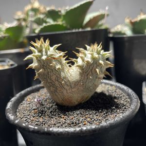 こちらも休眠でシワシワの、パキポディウム・恵比寿笑い😊 pic3と4、水をあげて1日後、まるまる太りました😁 pic5は、別のパキポディウム・恵比寿笑いも、まるまる太り可愛いです😍