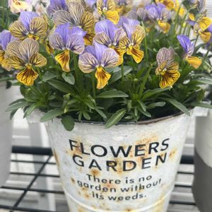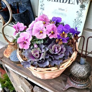 宮崎のビオラ2つ🌼 エボルベとA storyをカゴに寄せ植えにしてみました!どちらも可愛い☺️