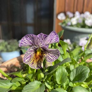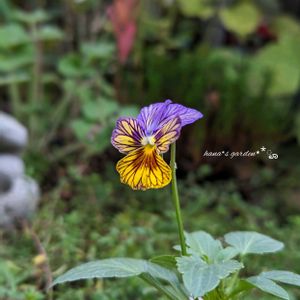 良く見る👀と、紫🟣でも 筋の 模様が 入るシリーズらしいです❗️ ただ その中でも、これは 地味なので、あまり 分からないなぁ〜‼︎‼︎ でも なんか 野趣ある感じの ビオラさんです💜 今朝は、雨☔が 上がったよう〜で 良かった、良かった。。。