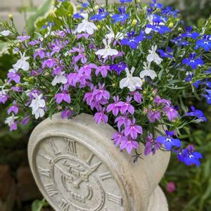 ✨✨寄せ植え✨✨ 春に向けて作りました❣️ ①💜A-STORY ビオラ みつばちの羽音 ネーミングで楽しくなり、 🐝ミツバチの羽のような模様が 素敵💜茎が長めで飛んでるよう シレネ ユニフローラの斑入り葉💕 ②寄せ植えの全容 ③プリムラが盛り盛り クローバー🍀ティントガーネット ④ローダンセマム アフリカンアイズ ⑤キンギョソウ ブロンズドラゴン 後側に植えているので目立っていません 早く大きくなぁれ😃 みつばちの羽音のビオラで㊗️👏 🏷️(祝)チームブルー5周年 おめでとうございます🎊🎉 今日の北風が冷たいです😨 午後からお日様が出て日差しが有り難いわ☀️ 皆さま、寒暖差に気をつけてお過ごしくださいね🙏