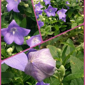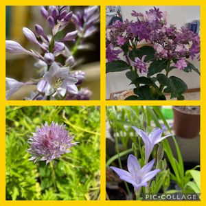 ❀今日のお花❀ ✾キキョウ✾ &庭のパープルカラー 今日のお花! ①コラージュしたのがありました! どうにか?間に合ったようですね! 丈の低いキキョウサン。 ②ラベンダーセージ 毎年、段々と株がデッカクなっていくラベンダーセージ!今年になり2回剪定して咲いています! ③クレマチス ?暑すぎるからか花びらも細くなり4月に咲いた頃とでは……おんなじものだろうかと…。 葉っぱ🌿も肥料が効くたのか?黄緑から緑になったみたい! ④ギボウシ斑入り ギボウシなんて思っていなかったのですが、花を観て確信👀! 花が咲く前は葉っぱ🌿鑑賞用かと思っていたギボウシ。 ⑤あさがお 家の裏の花壇に植えてある朝顔!いつも朝イチを見逃していたpic❣あさが!