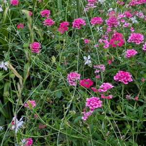 ①バ−ベナが育ちすぎて、お手入れをさぼるとガウラと交差してすごい眺めになりました🤣💗🤍 ②地植のギボウシはやっと蕾が上がっています🩷 ③サルスベリは毎日暑いのでお花がたくさん咲きました✨🤍 ④元気に咲いています 涼しげで繊細な雰囲気が好きです🥰🤍 ⑤三ツ星品質モニター ミニなので分かりづらいけど、新しい葉🌿が出て来ています💞 🧚♀️