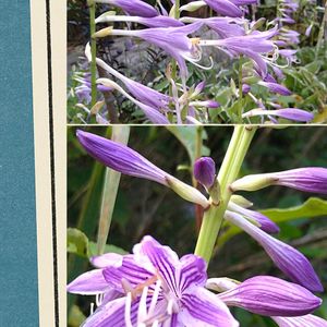 今日のお花🔸ギボウシ🔸 斑入りが好きで数種類のギボウシを楽しんでいます💚🤍💛🎶 ① 今咲いているコバギボウシ🤗 魅せられる花色のギボウシです✨💜✨ ④ 1番早く、6月に咲いたオオバギボウシ🤗 葉芽が出てくるのが1番遅くて、駄目になってしまったのかなと毎年やきもきさせられるギボウシです🤭