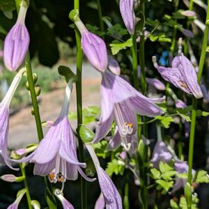 8月31日 ✿❀ 今日のお花❀✿ 🌿🌿💜🤍 ギボウシ 🤍💜🌿🌿 別名 ホスタ、ギボシ、ウルイ 花穂を立ち上げ、うつむき気味に多数の花が咲きます。つぼみが橋の欄干飾りに似ることから命名。 東アジア特産で、仲間の大部分は日本に自生しています。国内ではコバギボウシ、オオバギボウシ、ミズギボウシなどが山野に自生しています。江戸時代から観賞用似栽培され、多くの園芸品種が作られています。覆輪や斑入り葉、黄金葉、青みを帯びた葉など美しい葉が魅力で半日陰や日陰の庭に欠かせません。 花期 6〜9月 草丈 30〜120cm 🏷️日曜日は日本を感じる和の花 🏷️愛しの紫