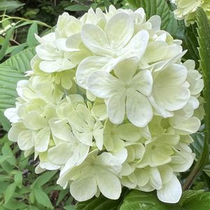我が家の庭の鉢植えの大手毬が咲いてきました 少し緑がかった白い花が、丸い手まりの様です
