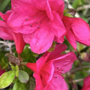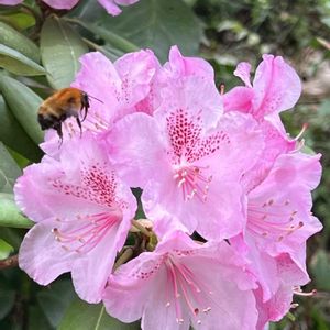 「世界に一つだけの花」 日本石楠花の花が満開 株全体に11花が美しく咲き、蜜蜂もお食事訪問 日本石楠花協会のお爺さんが作出した唯一の花