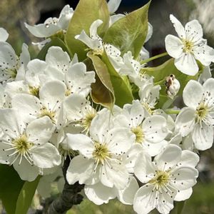 我が家の裏庭で、幸水梨の花が咲いてきました 野菜畑では.豊水と幸水を並べて植えてます‼️