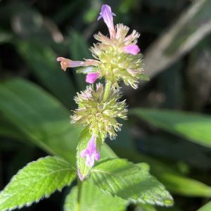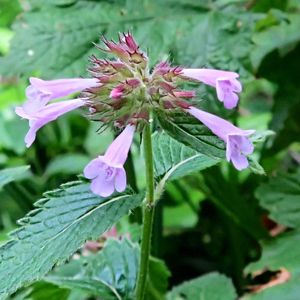 クルマバナ 🌱シソ科 トウバナ属 ✽四角柱の茎が直立して高さ30〜70cmの多年草 ✽対生する葉は長卵形で浅い鋸歯縁 ✽花は段を作って輪生状につき、柄より長い線形の苞があり、5裂したがく裂片の先は褐色を帯びる ✽花冠は長さ1cmほどで下唇が大きい2唇形 小さな花ですが目立ちます🩷