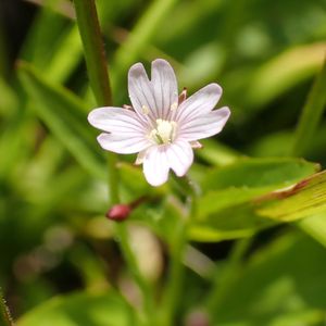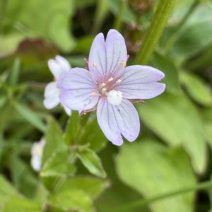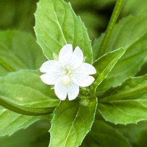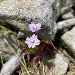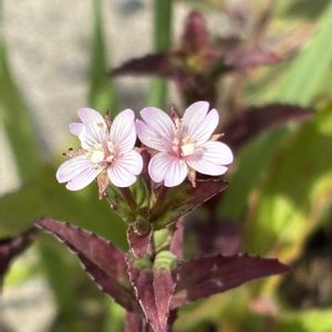 イワアカバナ 🌱アカバナ科 アカバナ属 ✽高さが20〜60cmの多年草で、茎はよく分枝し屈毛が散生する ✽葉は披針形〜長楕円形で凸点状の鋸歯縁 ✽花は径1cmほどで花弁は4個、柱頭は頭状 花は白色〜淡紅色です! 淡紅色も咲いてましたが上手く撮れて無かった😢