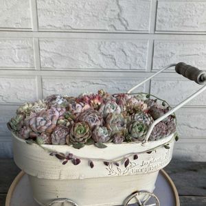 今日も多肉の寄せ植えです(*ˊᵕˋ*) エケベリアを沢山使いました。 実は…以前作った大きなリース、寒くなり多肉がギュッとしまってきたらスカスカになってしまいました。 それを見る度に気になって仕方がない… 思い切って解体して、この鉢と昨日投稿の鉢に植えました。 肥料無しの多肉の土を使っていたので、ネックレスが痩せ細っています(-。-; 春にはまた寄せ直しかもしれませんが、防寒が必要な今はコンパクトに。 この鉢、お花を植えても可愛いだろうなぁ( ˶ˊᵕˋ)੭♡ ビオレッタがこんもりと咲く姿が浮かびました。 . . 𖥧 𖥧 𖧧 ˒˒. . 𖡼.𖤣𖥧 ⠜ . . 𖥧 𖥧 𖧧 ˒˒. . 𖡼.𖤣𖥧 ⠜