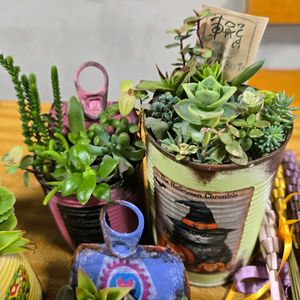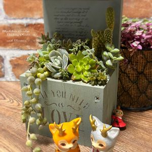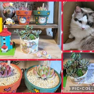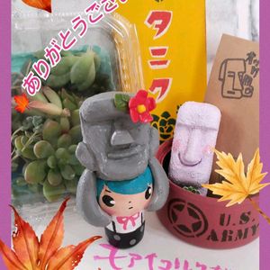 輪ッしょいでご縁がありました🎵 リメ鉢 リメ缶はリバーシブル マスコットの モアイちゃん🗿 かえるちゃん🐸 るるさんのプレート 可愛いです💕🩷 多肉ちゃんも可愛いです❣️ fukumomoちゃんご縁をありがとうございます