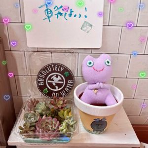 こんばんわ🌙 今日はカエルの日🐸と戦利品〜🎶 昨日はリンゴの日〜🍎🏷️1日遅れてめんごめんご🤣 ↑うちにも届きました📪️✨ fukumomoさん主催の輪ッしょい!プロジェクトに参加させていただきました😆 モアイコルクちゃんセット✨ 気づけばGSユーザーさんのところに姉妹がいっぱい🤭🎶 おまけのリメ缶には『BE HAPPY』やし、さきゅまるさんのみんな違う名札つきの多肉さんも『七宝』やしで、なんか良いことありそう💕 ↙昨日はリンゴの日🍎ってことで仕事のお供のリンゴサイダー🍎と仕事のお供たち✨ 昔から仕事が疲れると『シュワシュワする』のが習慣です🤭🎶 お文具さんは仕事が立て込んでいる時に教えてもらった『がんばらな糸』の動画✨ 定期的に見て癒されてます💕 ↘小桃(スプリングワンダー×だるま姫秀麗)🍀 だるま姫秀麗×スプリングワンダー(小梅と一緒に交配の子)🍀 みどりんのKOHさんからやってきただるま姫秀麗×スプリングワンダー🍀 小桃は交配式が反対なだけなのにピンク色✨ 色の違いをご紹介したかった😆✨ カエルにはやっぱりマイマイタン🐌✨