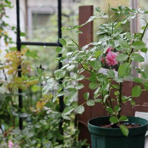 テラスの🌹ラベンダーラッシー✨が元気過ぎて、手抜きです。 もっと短く✂️しておくべきだったか😅 いい値段で買ってもお終いのもあるし、300円でもこんなに元気になるんだから、ウチが気に入ってくれたものが残ってくれれば良いかぁ🤔なんて開き直っちゃいます🤭 手前の鉢カバーに入れてる🌹ラローズ ドゥ モリナール✨も、カミキリムシでダメになりそうで動かせなくていたら、危機を脱出!! 植え替えもしてないのに、上から下からシュート出まくりです~😱 鉢穴から根っこが這い出してますꉂꉂ🤭