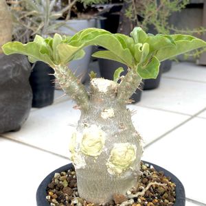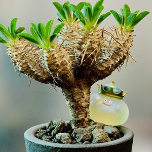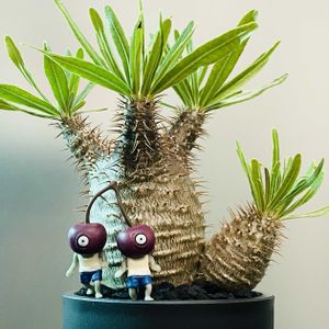 にょほほ〜 やっと調子が出てきた パキポディウム今年は遅い遅すぎる 😭😭😭 実生っ子の6年目2頭仕立て