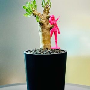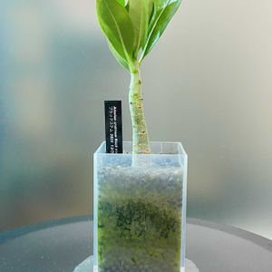 にょ〜 ダサいダサ過ぎる😭 アクリルのペン立てに根腐ったアデニウムをぶった斬ってドーン💥 はじめは透明できれいだったのよー 苔は許せるがアクリルの劣化が💦 ダサいダサダサ 今から植え替えしまーす🤣🤣🤣