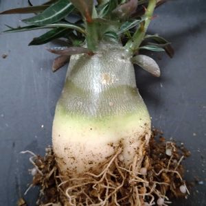 アデニウムのクリスパムです。 昨年タネまきした苗をポット上げしました。こちらは細葉みたいです。ソマレンセもありますが、、そちらは細葉ではないな。色んなが出回ってるみたいですね! 元肥はボカシ肥料2.5gに腐植酸(50%)を1.5gあとOKY-999を3〜4粒をポット下半分に混ぜ込みました。 Adenium somalense var.Crispam #Adenium🌺 #アデニウム #塊根(塊茎)植物 #盆栽 #