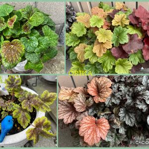 ウィンターベリー 中型種 スノーウィーパンキー 小型種 ピーチスムージー 大型種 ティラミス 中型種 フォーエバーミッドナイト 大型種 マルベリー 小型種 ハルディンさんからヒューケラが届きました。 今年の新品種です✨どの葉も色鮮やかでとても綺麗💕 寒い時期は、あまり成長しないので寄せ植えにぴったりです😊 今回は、2ポットづつ6号鉢に植えました。 暖かくなり大きくなったらサイズアップしたいと思います。