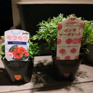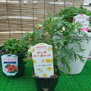 こんにちは☀️ 昨晩GETしちゃいました😃 ◇サントリーフラワーズ ボンザマーガレットのコスモスピンク🎵 ボンちゃんで1番好きなヤツです😁 新色も欲しかったけど、昨日のホムセンには不在😅 ◇ハルディン 大輪ネメシアモフモフのライトレッド🎵 香りはしないけど、成長具合が気になるのでGET‼️ モフモフになってくれるのだろうか〜🤭